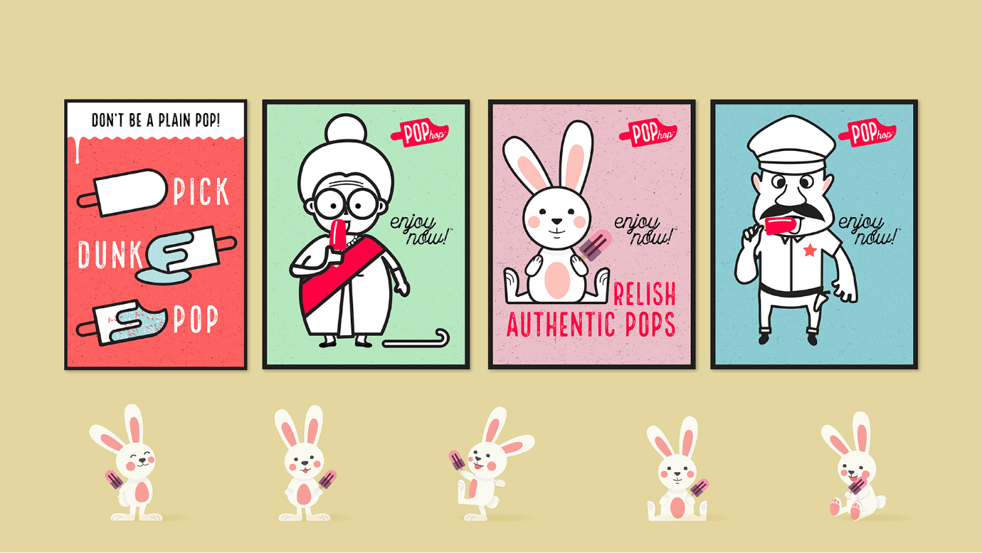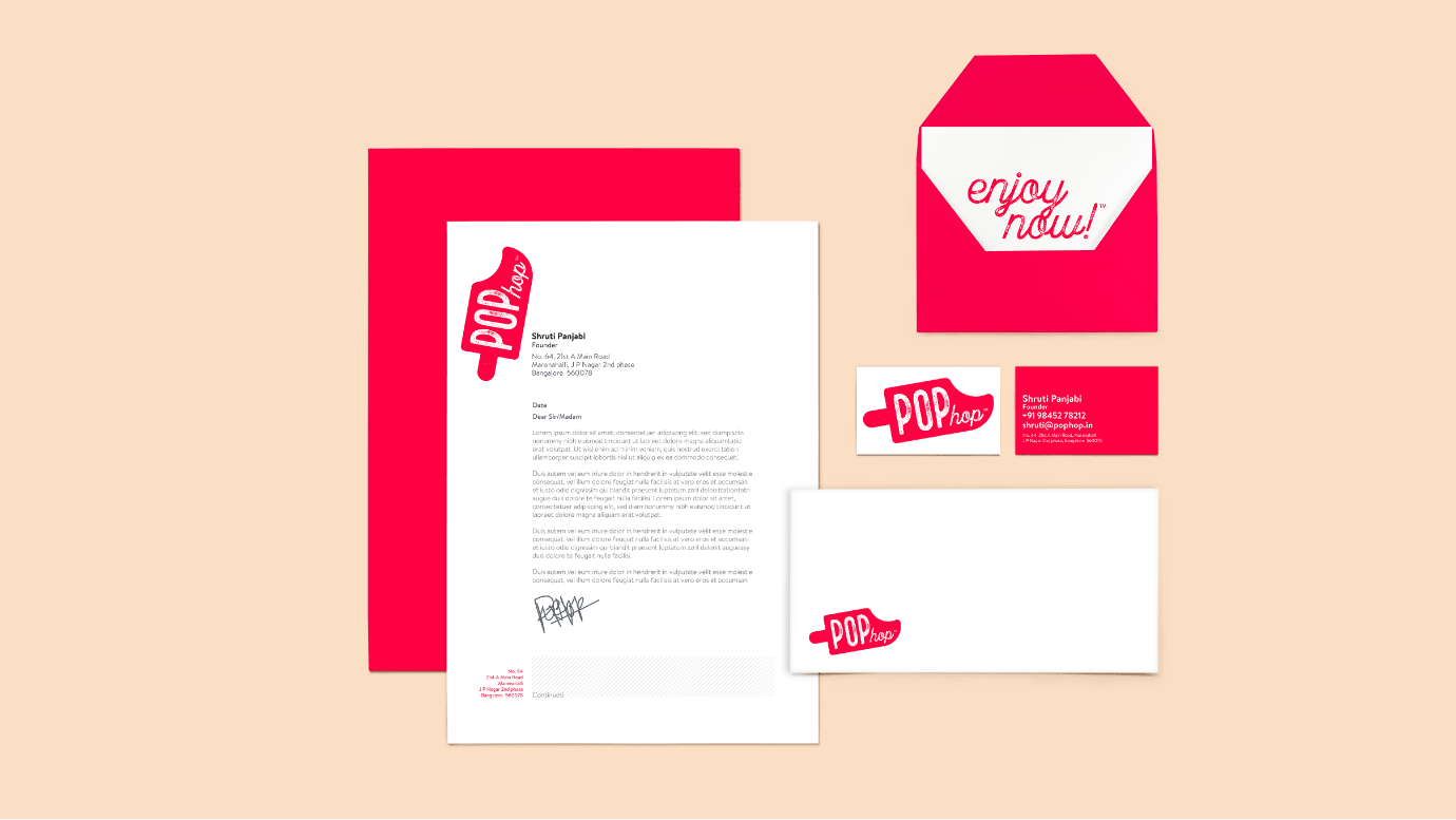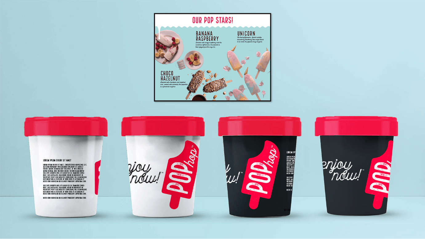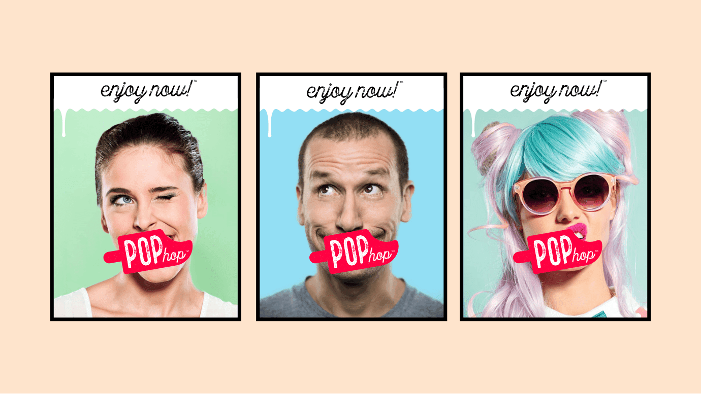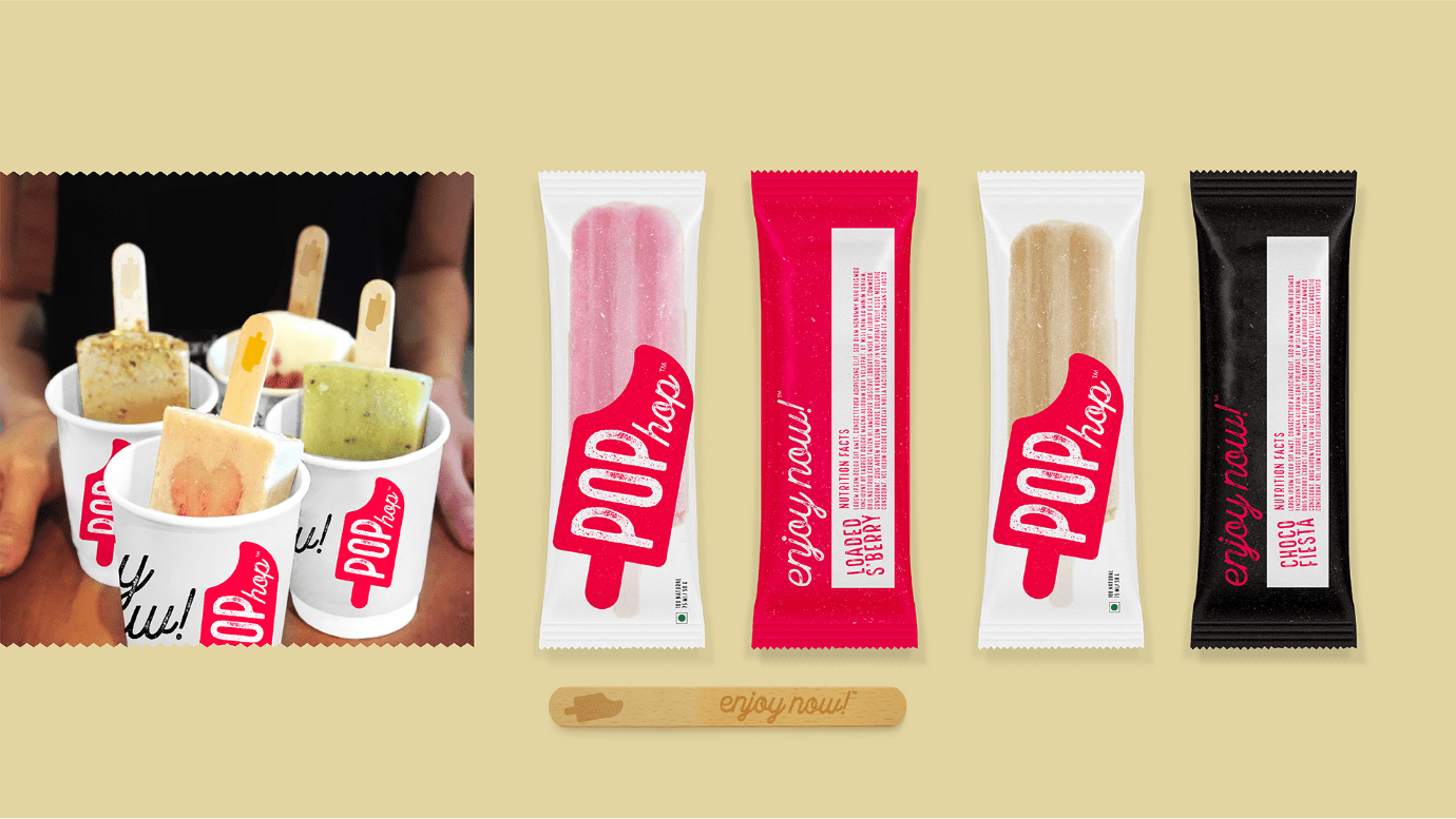 We have designed Pop Hop as a brand that’s simple, natural, artisanal. With an identity inspired by the universally understood form of a popsicle, tilted at an angle, with character infused for an artisanal look. And a strong positioning that serves as a call to Enjoy Now!